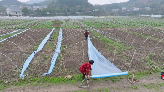 “這兩天我們天天在田里拉地膜,一刻也不敢耽誤。”正在勞作的瓜農黃桂蓮笑著介紹道,地膜不僅能有效抑制雜草生長,減少除草人工成本,還能鎖住土壤水分、提高地溫,為西瓜苗生長創造適宜的環境。她表示,地膜全部拉好后,等天氣轉晴,就會立刻搭建天膜、鋪設滴灌地管,再過兩天就能栽種第二批西瓜苗,目前基地的西瓜苗已順利移栽三分之一,預計后續將穩步推進栽種工作。